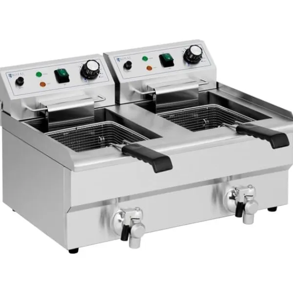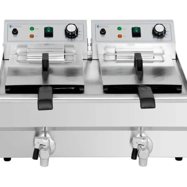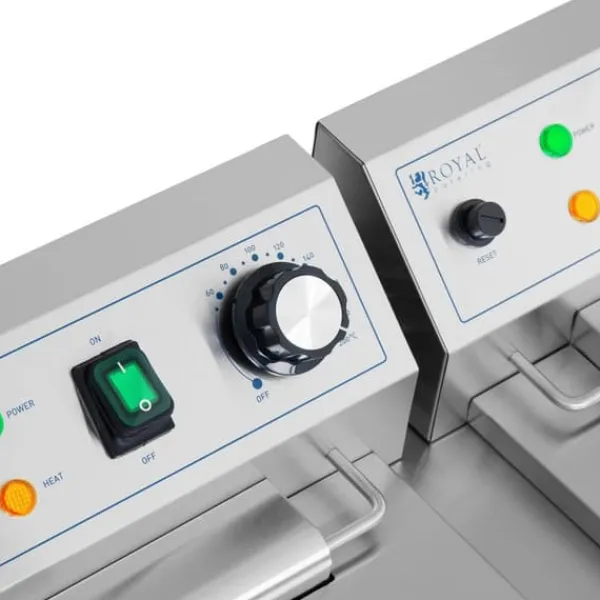 Om du väntar ett stort antal gäster i din restaurang som vill äta rätter med pommes frites är du väl förberedd med den elektriska fritösen RCPSF 18ETH. De två friteringsbehållarna har en total kapacitet på 22 L. Två kraftfulla värmeelement med totalt 6,000 W värmer frityroljan snabbt till önskad temperatur. Därför erbjuder el-fritösen de bästa förutsättningarna för att förse dina gäster med färska pommes frites vid stora evenemang på ett kongresshotell lika tillförlitligt som vid utomhusevent och festivaler med många hungriga besökare.