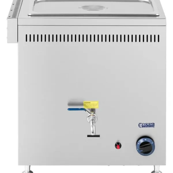 Gas bain marie RC-BMG6020H från Royal Catering är perfekt för varmhållning av olika rätter och tillbehör under en längre tid. I GN-behållaren kan mat som kött, fisk, grönsaker, ris, potatis och sås hållas vid önskad temperatur utan att brännas vid. Denna bain marie med gas är optimalt utformad för restaurangbranschen och passar för användning i t.ex. restauranger, hotell, matsalar, bufféer, gatukök, cafeterior eller äldreboenden och sjukhus.