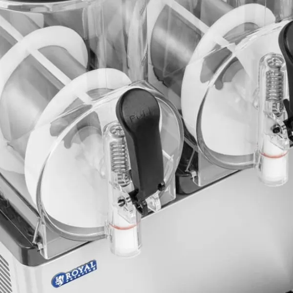 Unna dina kunder lite svalka och sätt ett leende på deras läppar med en slush i livliga färger. Använd Royal Caterings slushmaskin för att skapa din färgglada isdryck, som du presenterar på ett snyggt sätt på ditt café eller din bar. En slush är också ett uppfriskande blickfång på festivaler, marknadstorg eller i simhallar! Men med slush ice-maskinen kan du inte bara servera glass, utan även alla möjliga andra sorters kalla drycker, som fruktdrinkar, cocktails eller till och med sorbet.