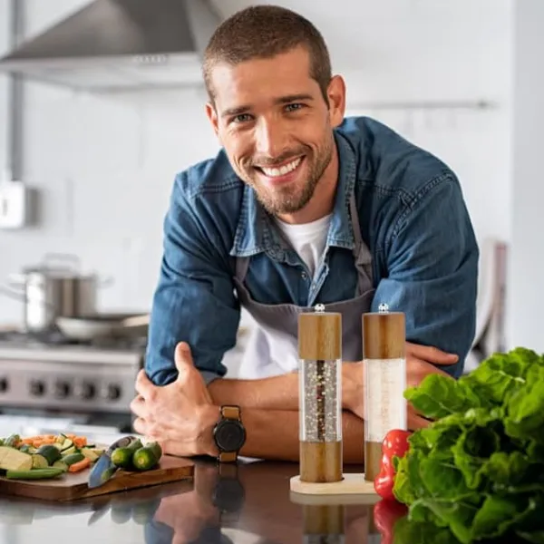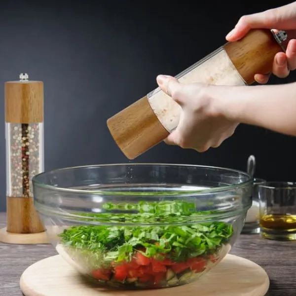 Detta salt- och pepparkvarnsset är perfekt för att krydda dina rätter med nymalda kryddor, och har en hållbar keramisk kvarn samt en attraktiv naturlig design som förhöjer varje matbord. Setet inkluderar praktiska tillbehör för enkel påfyllning, noggrann rengöring och ett underlägg som håller bordet prydligt.
