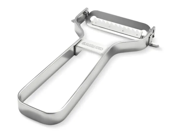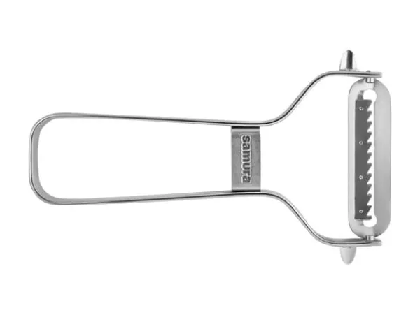 kvalitativa japanska köksverktyg förvandlar din matlagningsupplevelse, vilket gör det enkelt att skapa vackert skivade och juliennade grönsaker med minimal ansträngning. Tillverkad av hållbart rostfritt stål, säkerställer skalaren lång livslängd och motståndskraft mot slitage, vilket ger ett pålitligt tillskott till ditt köksarsenal.Den ergonomiska designen av Samura Premium Grönsaksskalare erbjuder ett bekvämt grepp, vilket möjliggör förbättrad kontroll och stabilitet under användning. Oavsett om du skalar potatis, morötter eller gurkor, är detta verktyg konstruerat för att minska belastningen under längre perioder av matberedning. Det skarpa, precisions