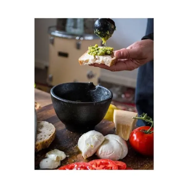 och även denna vackra gjutjärnsmortel med praktisk pip och greppvänlig stöt.