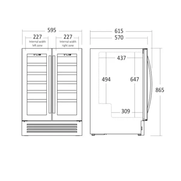 Scandomestic SV 91 X – Vinkylskåp – 2 zoner – bredd: 59,5 cm – djup: 61,6 cm – höjd: 87,2 cm – 119 liter – svart/rostfritt stål – Upp till 36 flaskor