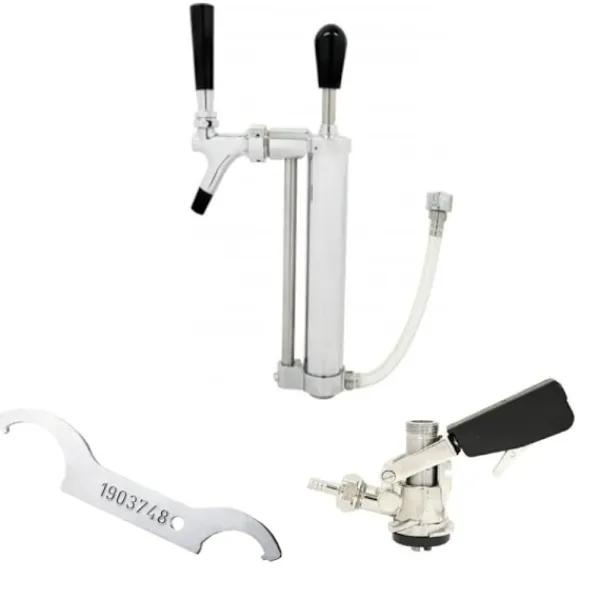 Set med picknickpump med kolvkran 5/8 Co2-utlopp Det är möjligt att tappa direkt utan en CO2-flaska! Allt du behöver är en kagghatt med ett 5/8 CO2-utlopp! Skruva helt enkelt fast picknickpumpen på keglocket – pumpa in luft och du är redo att tappa! – Konstruktion helt i metall – inkl. kolvkran – utan fatförslutning