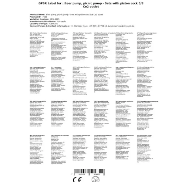 Bli först med att recensera ”Set med picknickpump med kolvkran 5/8 Co2-utlopp, KEG:Type M” Avbryt svar