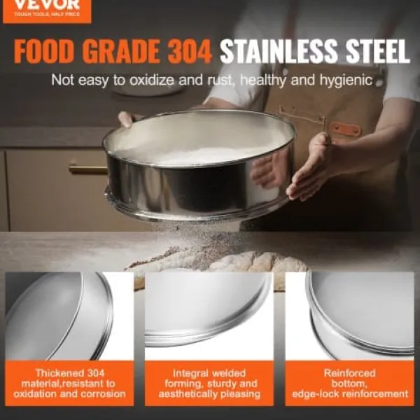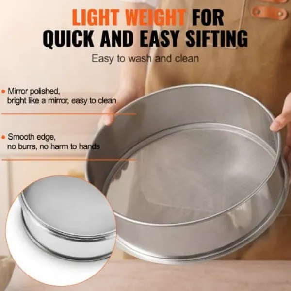 Detta finmaskiga mjölsikt är utformad för effektiv och precis siktning, vilket gör den idealisk för bakning och filtrering av torra ingredienser som mjöl, socker och kryddor. Tillverkad av livsmedelsklassat rostfritt stål, är den hållbar, lätt att rengöra och passar både för hemmabruk och professionellt bruk. Dess olika maskstorlekar och släta kanter ger mångsidighet och säker hantering för en rad olika köksuppgifter.