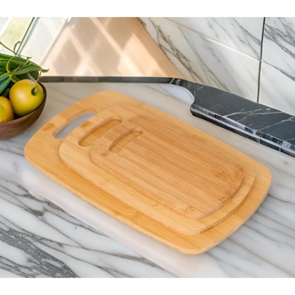 Uppgradera dina kulinariska verktyg med dessa skärbrädor i bambu, perfekta för både skärning och servering. Deras eleganta design och praktiska egenskaper gör dem till ett måste. Skaffa din idag och förvandla din köksrutin.