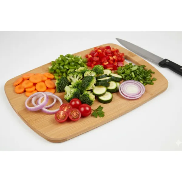 Upptäck mångsidigheten hos våra skärbrädor i bambu, designade för enkel förberedelse av frukt och grönsaker. Tillverkade av fin bambu, erbjuder de hållbarhet och enkel rengöring, vilket förbättrar din köksupplevelse.