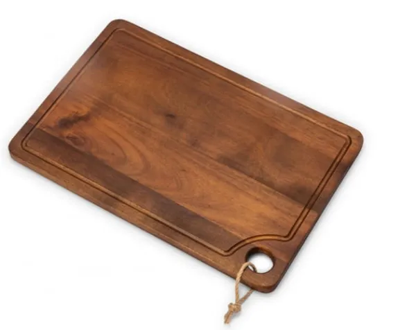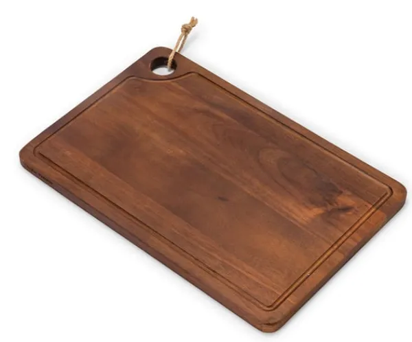 Skärbrädan är lätt att lyfta då den är tillverkade av akaciaträ, som dessutom ger den en vacker färgskiftning och lyster.