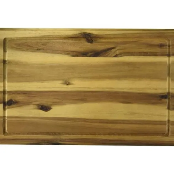 Upptäck Kesper skärbräda i brun akacia, som mäter 40x26x1,5 cm. Perfekt för att skära kött, frukt och grönsaker, den kombinerar funktionalitet och elegans. Inte kompatibel med diskmaskinen, den är idealisk för användning i köket.