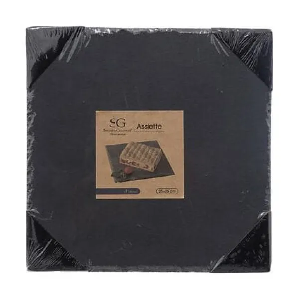 Skiffer Serveringsbricka 25 x 25 cm–elegans och funktionalitet. Denna serveringsbricka, gjord av skiffer, kombinerar exceptionell elegans med praktisk funktionalitet. Mätning25 cm x 25 cm, det är den perfekta lösningen för att servera snacks, desserter eller andra rätter. Dess vikt är bara 0,92 kg, vilket gör den exceptionellt behändig och enkel att använda. Dessutom, skiffermaterialetsom den är gjord av ger den ett unikt, modernt utseende.