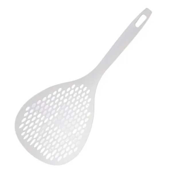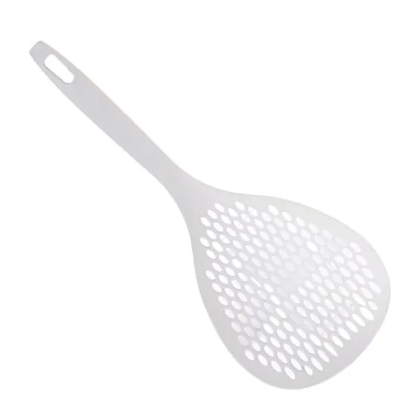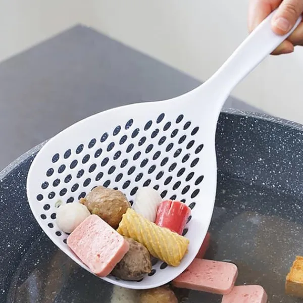 1、 MÅNGSIDIG DESIGN: En slev som tillgodoser flera köksbehov, som att sila olja, ösa dumplings och filtrera ingredienser.
