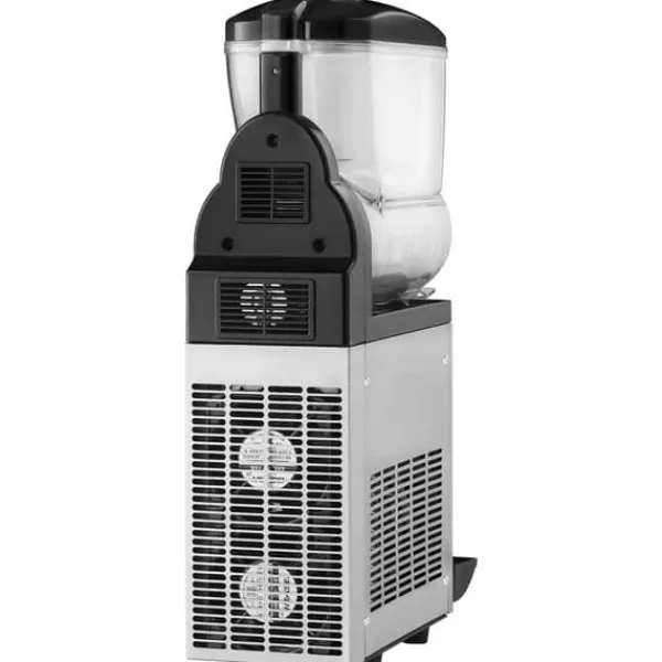 Denna slushmaskin har en imponerande 15 liters enkeltank som kan skapa upp till 60 koppar slushy-drycker per sats. Med olika temperaturinställningar, inklusive slush, kalla drycker och automatisk rengöring, är maskinen lätt att använda och övervaka. Den robusta konstruktionen i rostfritt stål och livsmedelsgodkänd PC-tank garanterar långvarig prestanda och enkel rengöring.