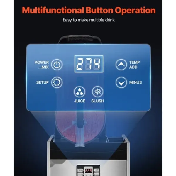 För olika drycker: Denna uppgraderade kommersiella slushmaskin har ett justerbart temperaturområde på 5 ~ 59 ℉ / -15 ~ 15 ℃, vilket ger dig möjlighet att kontrollera mjukheten eller hårdheten på dina drycker. För kalla drycker: 3 ~ 5 ℃ / 37,4 ~ 41 ℉; för alkoholfria slushies: -3 ~ -1 ℃ / 26,6 ~ 30,2 ℉; för alkoholhaltiga drycker: -12 ~ -6 ℃ / 10,4 ~ 21,2 ℉. (Rekommenderad sockerhalt: cirka 13 %, alkoholhalt: under 13 %). Den är idealisk för att skapa ett brett utbud av drycker som juice, te, margarita och iskaffe.