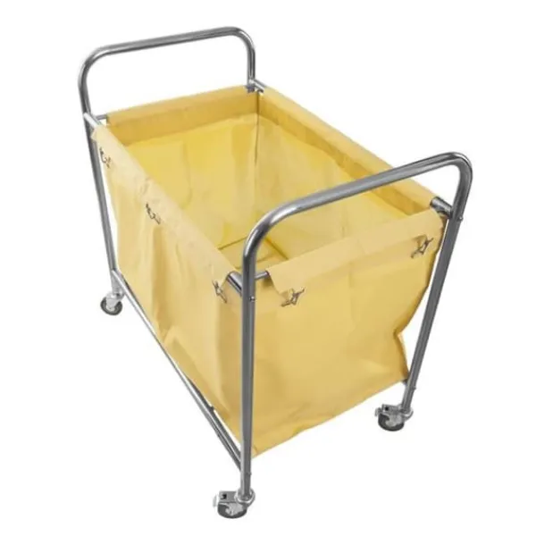 Tvättvagnen RCWW 1 från Royal Catering är designad för att samla in och transportera smutsiga underkläder, sängkläder och handdukar. Ramen är gjord av rostfritt stål, och väskan är gjord av eko-läder, täckt med en gummiyta på insidan. Tvättpåsen har en kapacitet på 250L.