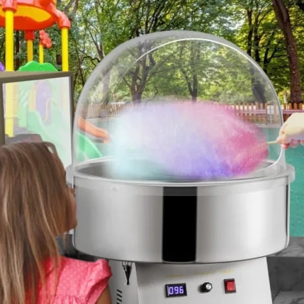 Detta kupolskydd är utformat för att passa de flesta kommersiella sockervaddsmaskiner och ger ett skyddande hölje som ökar säkerheten och hygienen under användning. Tillverkat av förtjockad akryl, erbjuder det hållbarhet, klar sikt och enkel installation, vilket gör det idealiskt för både professionellt och hemmabruk. Den transparenta designen gör att du kan övervaka sockervaddsprocessen samtidigt som produkten hålls innesluten och lättillgänglig.