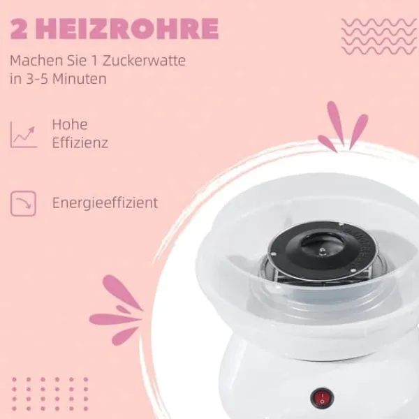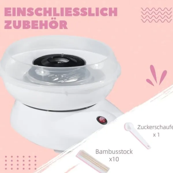 – Enkel tillagning av sockervadd: Tryck bara på startknappen så börjar sockervadden bildas på cirka 3–5 minuter. Lämplig för vuxna och barn (under uppsikt av vuxna).