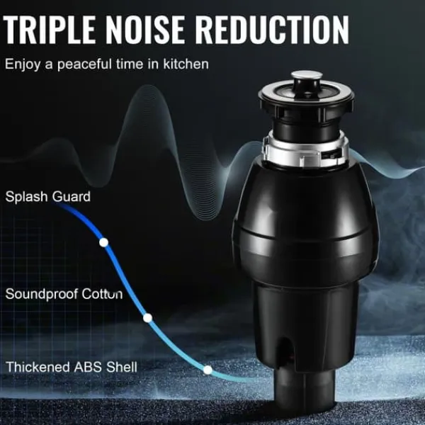 - Minskar ljudnivån: Med tre lager av brusreducering, inklusive ljudisolerad bomull, stänkskydd och ett tjockt ABS-skal, ger denna matavfallskvarn en tystare slipupplevelse. Det minimerar störningar och säkerställer en lugn drift.