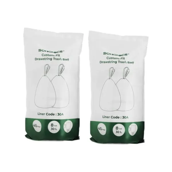 Mooistoerwonen 30L dragsnöresäckar för 60L dubbelkärl, kod 30A, 1 rulle, totalt 45 påsar, med bärhandtag, robusta och vattentäta, för köket, vit. Inte för stor, inte för liten – precis lagom: Har du svårt att välja rätt soppåse från det breda utbudet av olika modeller till din soptunna? Vi hjälper dig gärna! Dessa soppåsar är speciellt utformade för 60L dubbelkärl och 30L soptunnor från Mooistoerwonen. Äntligen behöver du inte längre lägga ner mycket tid på att leta efter lämpliga soppåsar! Hur underlättar dessa påsar köksarbetet? De är utformade för Mooistoerwonen dubbelkärl med en kapacitet på 60 L och en kapacitet på 30 L och passar perfekt. Den optimala storleken förhindrar att påsarna flyttar sig eller att locket högst upp på kärlet inte stängs ordentligt. De praktiska handtagen (dragsnören) hjälper dig att stänga soppåsarna och transportera dem enkelt. Både påsarna och handtagen är tillverkade av robust, rivstålig HDPE-plast. Tack vare den robusta plasten och de välbearbetade sömmarna är dessa påsar vattentäta och hållbara. Påsarna har inga obehagliga lukter. Produktdetaljer: Färg: Vit Material: HDPE (High-Density Polyethylene) Mått per påse: 52 x 74 cm (L x H) Mått per rulle: 8 x 23 cm (Ø x H) Innehåll per påse: 30 L Totalvikt: 1,5 kg. Leveransomfattning: 2 x rulle sopsäckar (totalt 90 stycken). Anmärkningar: Förvara produkten utom räckhåll för barn och husdjur. Kvävningsrisk! Vi rekommenderar inte att använda denna produkt för förvaring av livsmedel. Håll produkten borta från värmekällor.