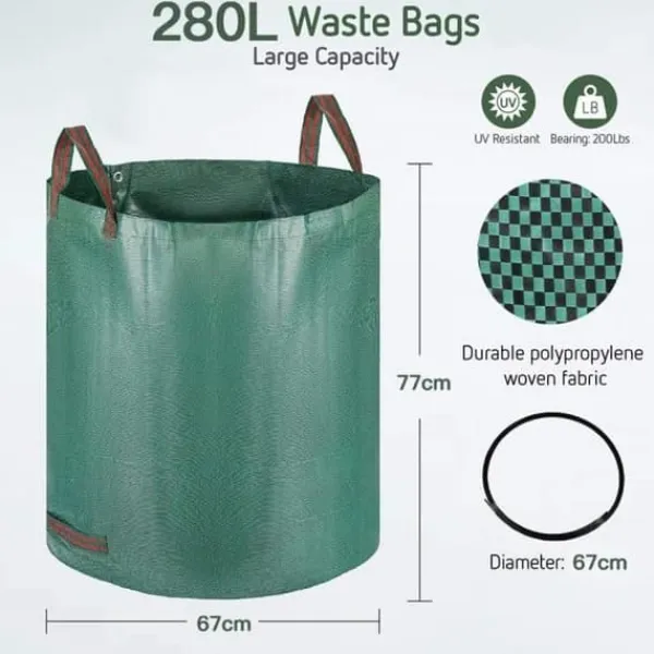 BYGGAVFALLSpåse Trädgårdspåsar Set med 2 272L vattentät och rivtålig trädgårdsavfallspåse Återanvändbar grön avfallspåse Denna 272L trädgårdspåse är lämplig för att samla upp gräsklipp, döda löv, grenar eller annat trädgårdsavfall. Med den kommer du att säga adjö till livet som kräver flera rundresor för att hantera fallna löv!