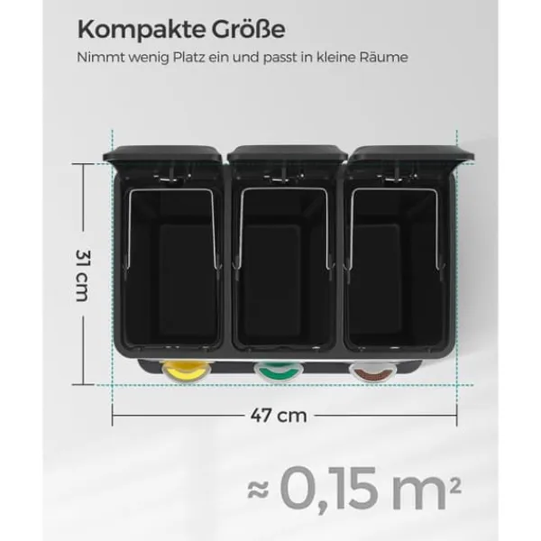 Denna 3-i-1 kökssoptunna erbjuder en effektiv lösning för avfallssortering med en stilren och kompakt design. Den har avtagbara innerkärl för enkel tömning och en fotpedal för hygienisk användning, vilket gör den idealisk för olika hushållsområden.