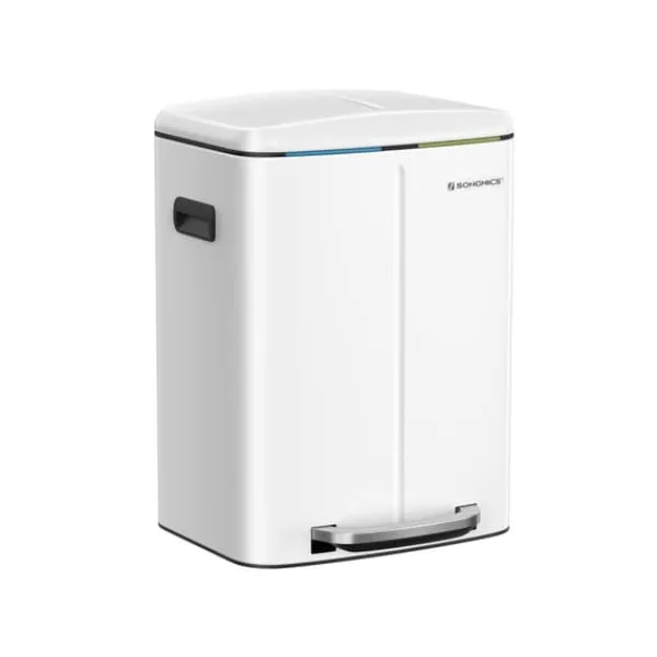 Steg för att sortera medan du kastar: Den här pedalbehållaren har 2 sektioner för att göra det enkelt att separera din återvinning; det bästa är att det kan göras utan att ens röra vid behållaren