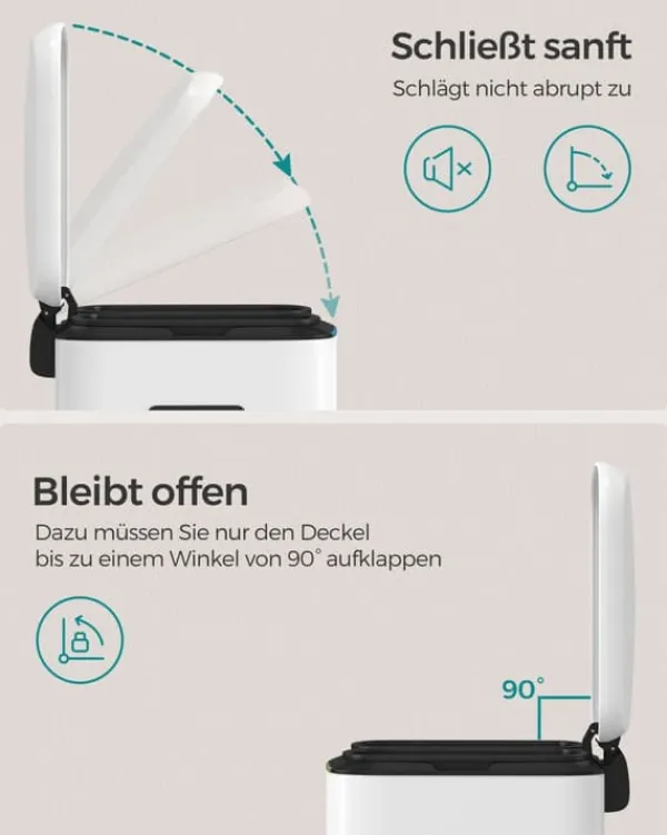 För ett bekvämt liv: Skäm bort dig själv med den här pedalsoptunnan, som stängs tyst tack vare buffertmekanismen. Vill du göra dig av med avfall? Trampa bara på pedalen och släng det i hinken – rent hem, bekvämt liv!