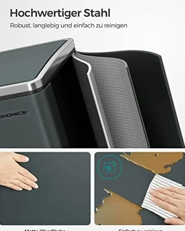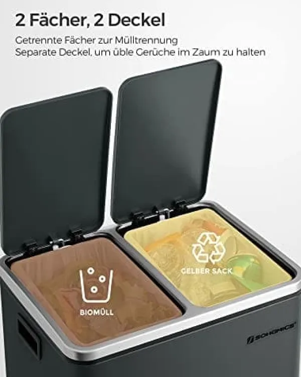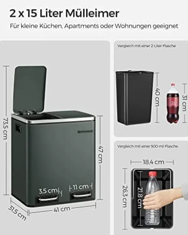 Vad du får: En modern skräpfack med 2 x 15L -fack, så att du enkelt kan sortera skräpet för återvinning och ha ett rent hem