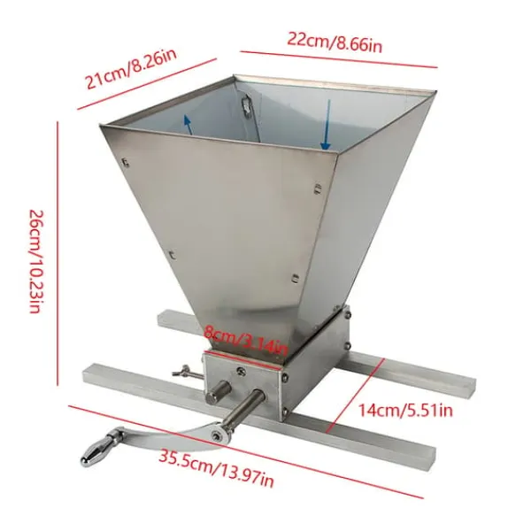 Kompakt spannmånskvarn för hemmetEn hållbar kvarn i rostfritt stål och aluminium som enkelt mal olika sädesslag. Med handvev eller drivning via elborr (ingår ej) får du flexibel användning, jämn malning och hög kapacitet tack vare en stor tratt på 4 liter – perfekt för färskt kross och malt hemma.