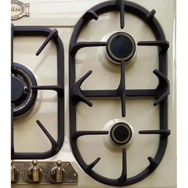 Kaiser Empire Elfenbein KG 9325 ElfEm, Gasolje för fristående spis exklusiv 90 cm, Lyxig tillverkare Kaiser, baserad i Berlin, Vinnare av German Brand Award 2017/2018, Nominerad till German Design Award 2020, Tillverkning som uppfyller de högsta kvalitetsstandarderna, design och ekologi, Matchande ugn och fläkt finns – Empire-linje, Mått: 86×50×5,5 cm, utskärning: 75×47 cm, 5 högkvalitativa gaskaminer, inklusive 1× turbo trippelkransbrännare 3,8 kW med gjutjärnswokadapter, 1× 3,0 kW, 2× 1,75 kW, 1× 1,0 kW, Inställd för naturgas, kompatibel med gasvätska/propangas, LPG-dysor ingår, Automatisk tändning, termoelectric säkerhet, frontala kontroller, kontinuerlig temperaturjustering, enhands tändning på varje knapp, Gjutjärnsgaller, utvidgad kokyta, optimal stabilitet, avtagbara, robusta, diskmaskinssäkra, Gjutjärnswokadapter ingår, För leverans: telefonnummer och adress krävs.