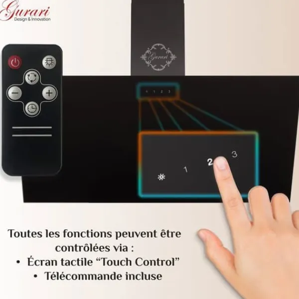 Fläkt GCH D 286.9 BL Prime, design frihängande 90 cm, svart kropp och skorsten, framsidan i svart glas, energieffektivitetsklass A, kraftfull motor 1000 m³/h med 3 hastigheter, beröringskontroll eller fjärrkontroll ingår, inbyggd timer, LED-belysning klass A, beröringssensor med 3 nivåer, möjligt att använda i frånluft eller recirkulation (kolfilter GE 15 som tillval), effektiv perimetral filtrering, diskmaskinstvättbara metallfilter, modern design, hög prestanda och låg förbrukning.