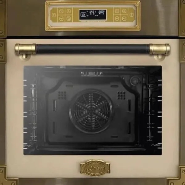 Typ av ugn: Multi 10 XXL multifunktionell elektrisk ugn med självrengöring DESIGN Induktionsspis med exklusiv autarkisk design med smalt ”Antique Gold” ram.