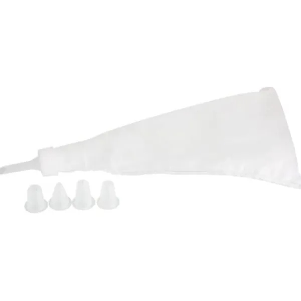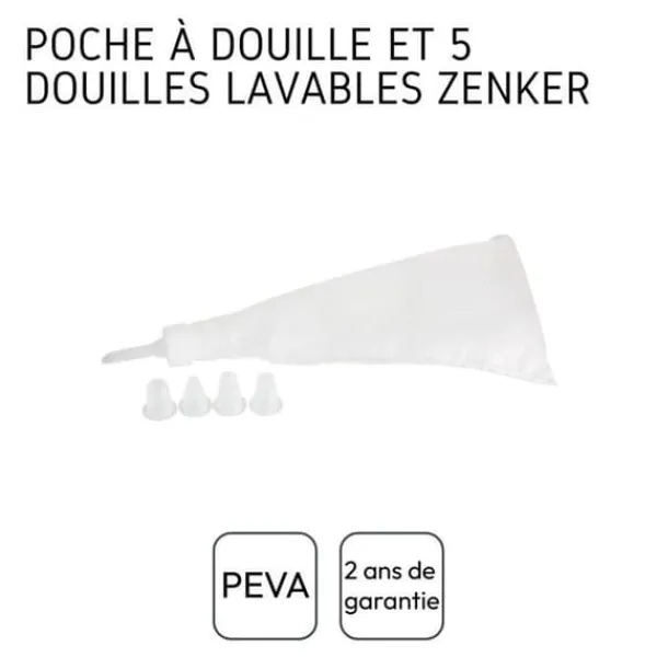 BESKRIVNING: Spritspåse för bakning med 5 spritsar. Setet är tvättbart och återanvändbart. DET LILLA EXTRA: Med denna spritspåse och de 5 spritsarna kan du skapa originella bakverk samt spektakulära dekorationer. KOMPONENST: Plast. DIMENSIONER: 28 x 14 cm. INNEHÅLL: 1 spritspåse + 5 spritsar för bakning. Spritspåsen är ett särskilt bakredskap som ibland kan vara svårt att bemästra perfekt. Spritspåsen gör det möjligt att göra många bakverksrecept som gräddbullar, kaffeeclairs, citronmarängpajer, dekorationer med smörkräm och mycket mer. Zenker är ett märke som tillhör Fackelmann Brands-gruppen och erbjuder ett brett sortiment av bakredskap och bakformar. När det gäller bakredskap gör Zenker ett starkt intryck genom att erbjuda både förberedelseverktyg och dekorationer för erfarna bagare. När det gäller bakformar är det ett banbrytande märke som erbjuder innovationer såsom silikon- och glasfiberbakformar som inte kräver något fett och ger fantastiska bakresultat. Zenker har därmed ett brett utbud av tillbehör och redskap för att stödja dig i dina dagliga recept, men också för speciella evenemang som fester, födelsedagar, bröllop, etc.