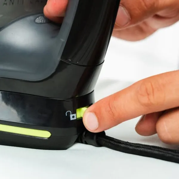 - Trådlös teknik: vårt mångsidiga sladdlösa ångstrykjärn gör strykningen mycket enklare och bekväm tack vare dess innovativa 2-i-1-design. Den kan användas med eller utan sladd, i horisontellt läge eller som ett vertikalt strykjärn, vilket ger utmärk rörelsefrihet.