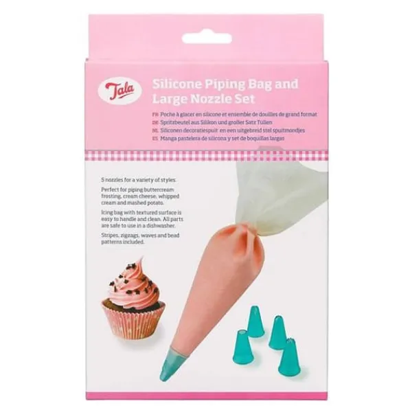 Innehåller 5 munstycken för en mängd olika stilar. Perfekt för spritsa smör kräm, färskost, vispgrädde och potatismos. Lätt att hantera och rengöra. Alla delar är säkra att använda i en diskmaskin.