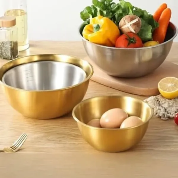 Mångsidig användning: Våra skålar i rostfritt stål är otroligt mångsidiga och fungerar som idealiska blandningsskålar i rostfritt stål för att tillaga ingredienser eller som soppskålar i rostfritt stål för att njuta av dina favoritsoppor