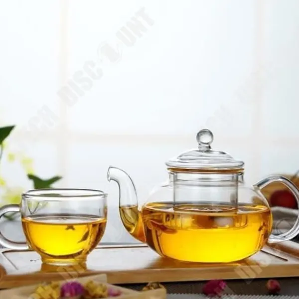 Upptäck vår 600 ml glasteapot, värmeresistent. Med sin transparenta design och integrerade filter är den perfekt för att njuta av dina favoritteer. Mått: 8.9 cm x 12 cm, vikt: 0.5 kg. Ett perfekt tillbehör för teälskare.