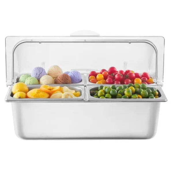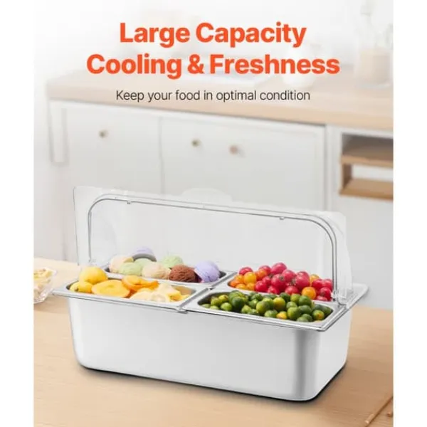 Vår bänkskiva för matserveringsbehållare är tillverkad av premiummaterial för att garantera en lång livslängd och enkel rengöring. Den erbjuder en elegant och praktisk lösning för att förvara och servera mat samtidigt som den bibehåller dess fräschör och temperatur.