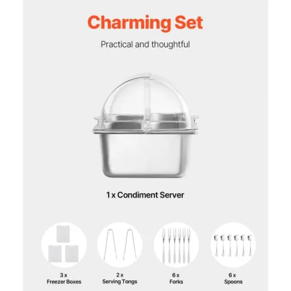 Elegant och praktiskt set: Inkluderar frysboxar, tång, fruktgafflar, skedar i rostfritt stål och silikonmattor för en bekväm och elegant matservering.