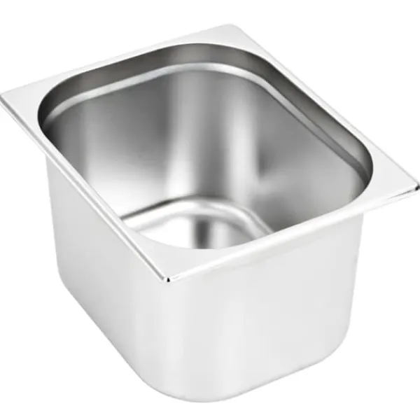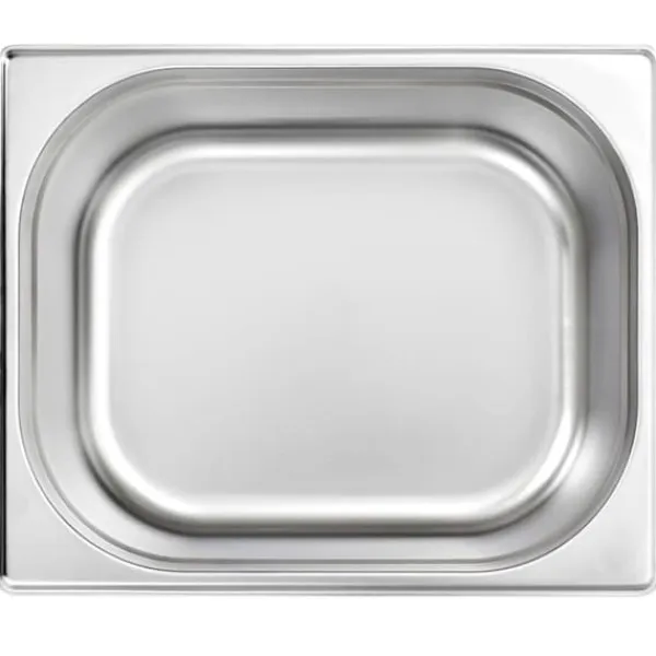 Eftersom den är tillverkad i starkt rostfritt stål har kantinen en massiv konstruktion som är enkel att rengöra. Dess slitstarka material är repfritt och enkelt att underhålla. Kantinen har standardmått och du kan därmed använda den universellt och med ett stort antal kombinationer. Följaktligen passar den perfekt i alla dina professionella köksskåp och med utrustning såsom vattenbad, chafing och salladsbarer. Plåten går att stapla och kan gömmas undan för att spara plats, därför är den väldigt praktisk och optimal för användning i restauranger, på hotell såväl som i hemmet.