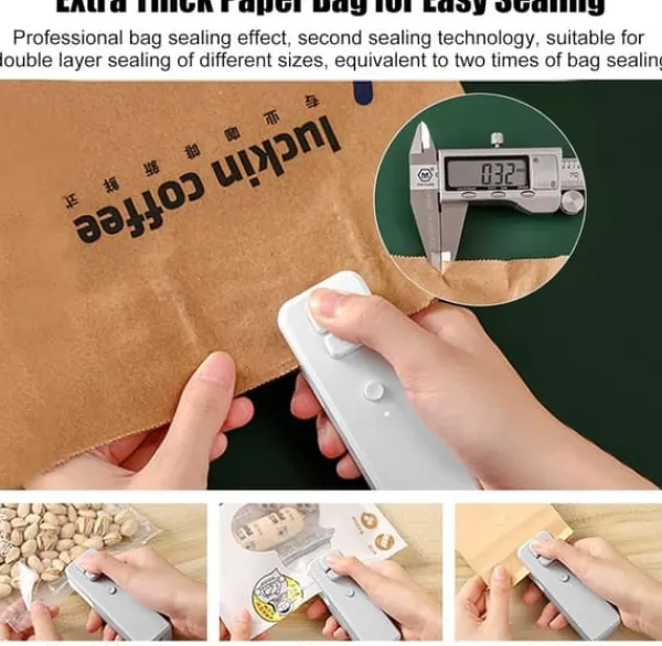 Välkommen till vår butik! Denna mini-påsförslutare är tillverkad av ABS-material, motståndskraftig mot höga och låga temperaturer för ökad hållbarhet. USB-laddning eliminerar besväret med att använda traditionella batterier. Den har en 2-i-1-värmeförslutare och skärare för snabb förslutning och skärning. ”+”-sidan är värmeförslutaren – förvärm i 3–5 sekunder innan du glider längs påsen. ”-”-sidan är skäraren för att trimma plastpåsar. Kompakt och bärbar med magnetisk baksida för enkel montering i kylskåp eller förvaring i påsar och fickor. Perfekt för användning hemma eller på språng i köket, vardagsrummet eller utomhus. Lätt att använda och lämplig för en mängd olika påstyper, inklusive belagda aluminiumfoliepåsar, PP-, PE- och PVC-påsar upp till 0,1 mm tjocka. Perfekt för att försluta och skära förvaringspåsar, potatispåsar, fruktpåsar och sockerpåsar. Mångsidig för hushållsbruk i matsalen, köket eller balkongen. Material: ABS Färger: Rosa, grå, vit, brun Mått: 11*3,5*3 cm Batterikapacitet: 400mAh Paketet innehåller: 1 x Förseglare, 1 x USB-kabel Nöjdhetsgaranti: Våra kunder är vår högsta prioritet. Om du upptäcker några produktproblem efter att du mottagit varorna, såsom skador eller felaktig mängd varor, vänligen kontakta säljaren omedelbart. Vi gör vårt bästa för att ge dig tillfredsställande kundservice.