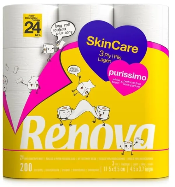 Renova Skin Care Purissimo toalettpapper 24 rullar En ny dimension av komfort som din hud förtjänar. 200 trelagers ark av välbefinnande i sin renaste form, totalt imponerande 23 meter per rulle! Purissimo hudvård skämmer bort din hud med extraordinär mjukhet och kvalitet gjord av de bäst utvalda fibrerna, utan tillsats av balsam och doft. Nu i ett maxpaket om 24 rullar till ett bra pris! Vitt toalettpapper Ultramjukt och absorberande 24 rullar per förpackning Luktfritt 3-lagers 200 ark per rulle 23m papper per rulle Dermatologiskt testat FSC C136137 certifierad Förpackningsmått: 37,5 x 25 x 38cm Denna produkt är tillverkad av FSC®-certifierat och annat kontrollerat material. Genom att välja denna produkt stödjer du ett ansvarsfullt skötsel av världens skogar. Tillverkare: Renova EAN-kod: 5601028024945 Ursprungsland: Portugal