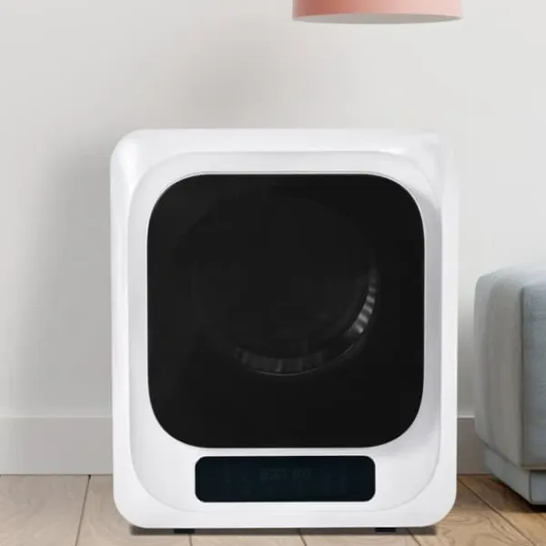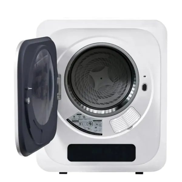 Effektiv torkning: Kapacitet 2,5 kg, praktiskt upp till 4 kg, med 850 W effekt för snabb och skonsam torkning av kläder.