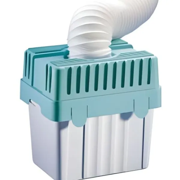 Kondensatorn för torktumlaren avfuktar luften när luftutsläppet från torktumlaren inte är möjligt genom ett hål i väggen eller ett fönster. Den flexibla slangen fästs enkelt vid torktumlaren, så att vattenånga leds genom slangen till behållaren, där den omvandlas tillbaka till vatten. Den stora volymen (8 liter) gör att den kan rymma en stor mängd fukt från luften.