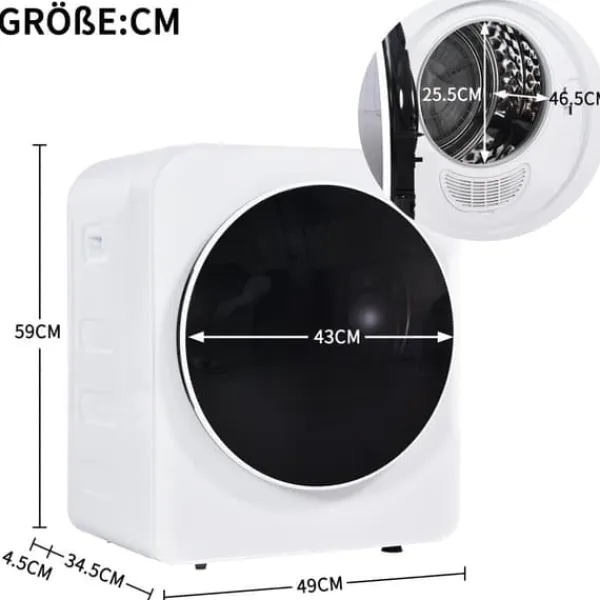 Denna kompakta torktumlare är den perfekta lösningen för små lägenheter eller studentbostäder. Med en torkkapacitet på upp till 3 kg och en 830W effekt, kan den snabbt torka kläder till en fluffig och mjuk finish. Utrustad med fem torkprogram och ett trestegsfilter för att ta bort fluff och undvika sekundär förorening. Den kan enkelt placeras på golvet, monteras på en tvättmaskin eller hängas på väggen.