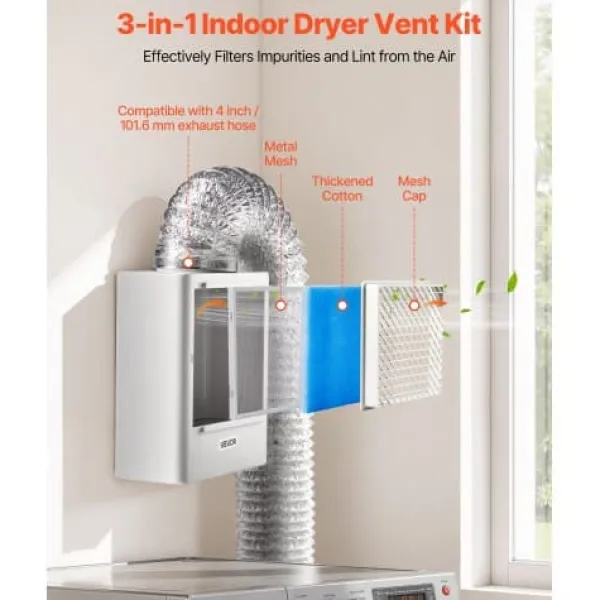 Detta 3-i-1 inomhus torktumlare-ventilationskit erbjuder effektiv luftrening och ökad säkerhet för ditt hem, med ett flerskiktat reningssystem och en smart överhettningspåminnelse. Den slitstarka ABS-konstruktionen säkerställer långvarig prestanda, medan det lättavtagbara nätlocket förenklar den rutinmässiga rengöringen. Njut av tystare drift och förbättrad energieffektivitet med denna mångsidiga ventilationslösning.