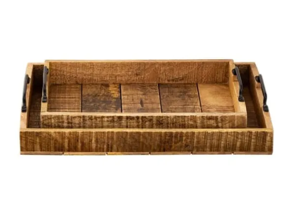 Träbricka set 2 delar 46x31cm serveringsbricka bricka trä dekorativ bricka av mangohol