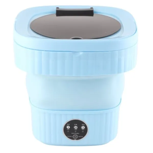 1, liten och bärbar: Tvättmaskinens vikbara design är mycket liten och bärbar, lätt att bära, mycket lämplig för resor, sovsal eller utomhusbruk.