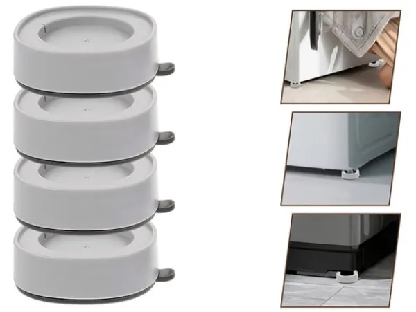 Fötterna passar de flesta tvättmaskiner, men fungerar lika bra under torktumlare, kylskåp eller diskmaskin. Med sin vibrationsreducerande funktion bidrar de även till att minska belastningen på maskinens komponenter – vilket kan förlänga dess livslängd. Placeringen är enkel: lyft apparaten och skjut in brickorna under fötterna. Ett set innehåller fyra universella enheter som ger direkt effekt utan verktyg eller montering.