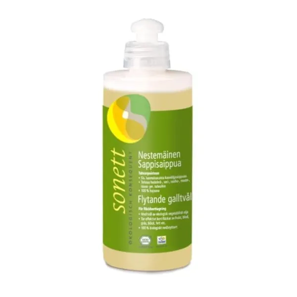 Flytande galltvål som är högeffektiv mot besvärliga fläckar som fett, blod, frukt, bläck etc. Galltvålen kan användas för direkt behandling av fläckar eller som extra rengörare i tvättmaskin. Galltvålen som kommer från Sonett är också biologiskt nedbrytbar.